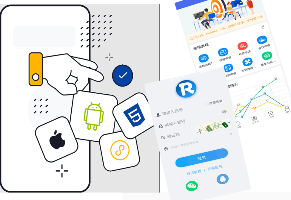 基于uni-app,可一键发布到APP、小程序、H5等移动平台上,手机电脑不受限,实现互联互通、高效办公。