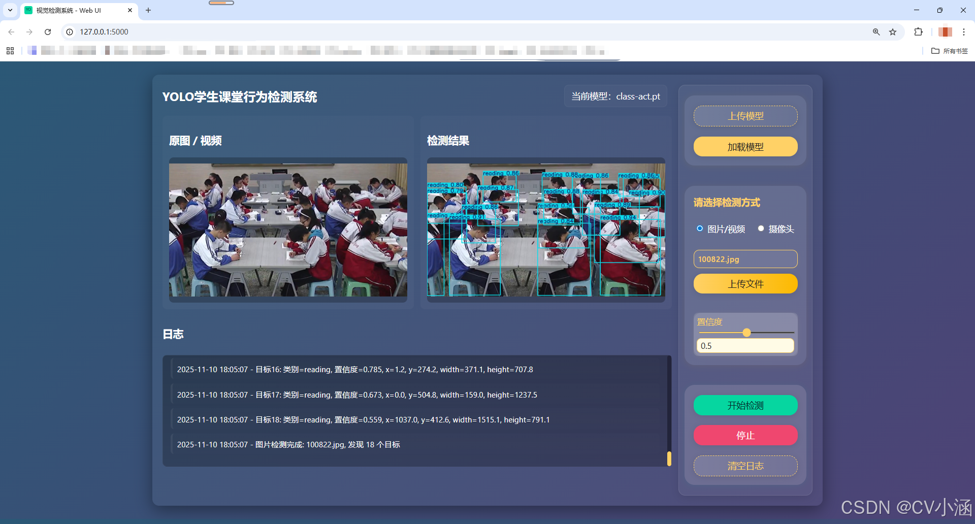 YOLO 算法凭借 "实时动态识别 + 多行为分类" 的优势,有效破解上述难题:其一,可通过教室部署的摄像头实现全时段、无死角监测,无需教师分散授课注意力,就能覆盖全班学生;其二,能精准区分不同课堂行为(如专注看黑板、低头玩手机、趴桌睡觉、小组讨论),避免主观判断误差;其三,检测数据可实时同步至教师终端,且能自动记录行为发生时间与频次,为后续分析提供客观依据,推动课堂管理从 "经验判断" 向 "数据驱动" 转型,是辅助教师优化教学、关注学生状态的关键技术。