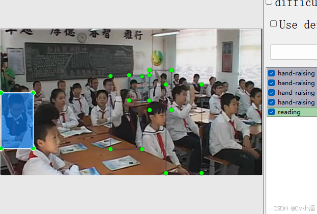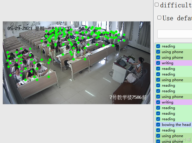 检测场景为学校教室、培训班、办公室等场景 ,可用于课堂秩序实时维护、个性化教学辅助、学习状态评估与反馈、教学效果优化支撑 等。