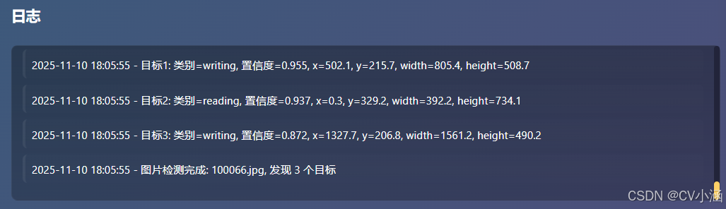 前端集成日志区,实时显示模型加载、推理、文件上传等操作的进度与结果。