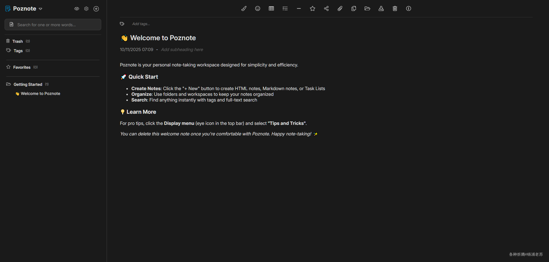 Poznote采用简洁的架构,避免复杂框架,确保快速运行和易于维护。 - Markdown 支持 :用户可以使用