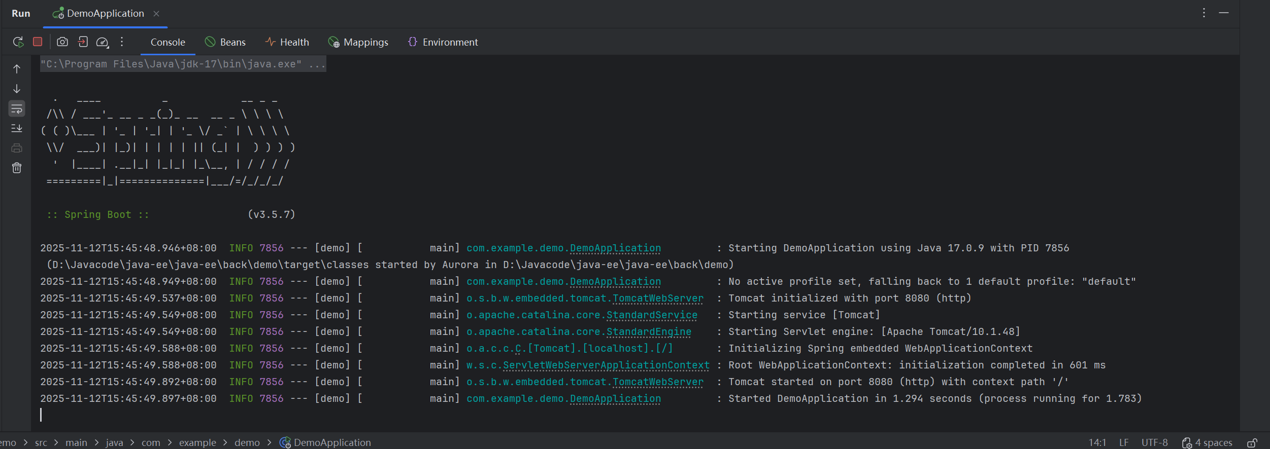 而我们的额SpringBoot项目中已经内置了Tomcat服务器,所以我们无需配置,就可以直接运行