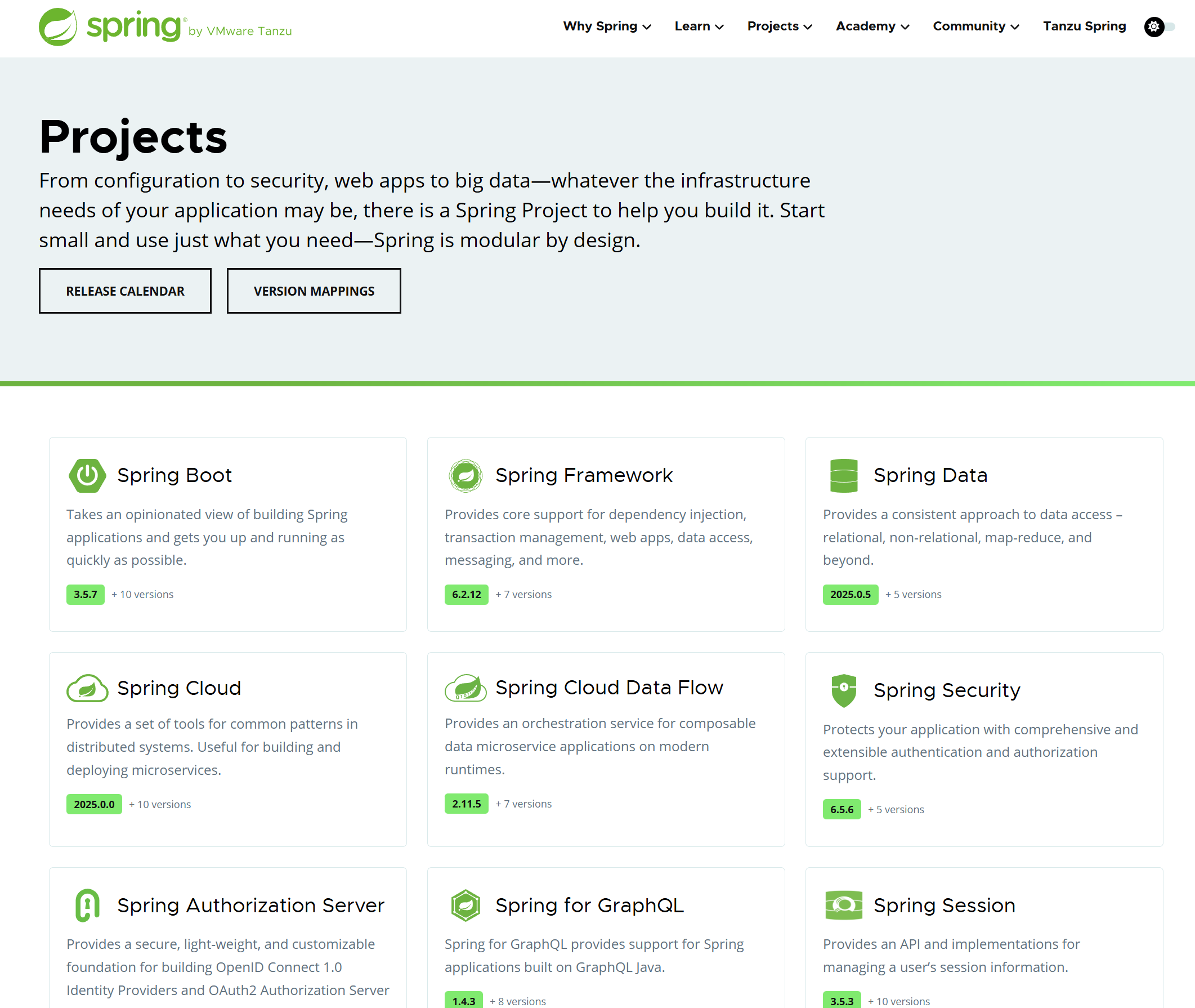 我们可以看到Spring官网上的项目之多,涵盖了开发的方方面面,我们先开始学习Spring Boot