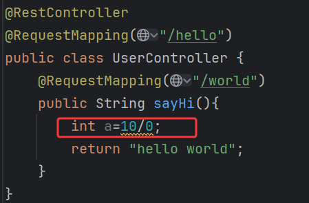 创建好这个类之后我们可以运行项目,在浏览器输入URL网址http://127.0.0.1:8080/hello/world,此时就可以在浏览器看到hello world