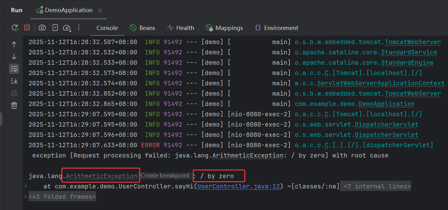我们可以看到已经报错显示一个算数错误,不可以/0