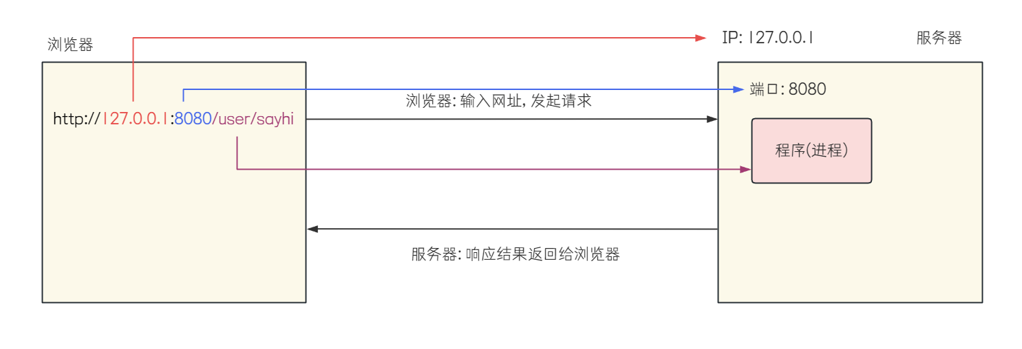 所以输入这个网址就是向本地计算机的8080端口程序,获取位置是/hello/world的资源或数据