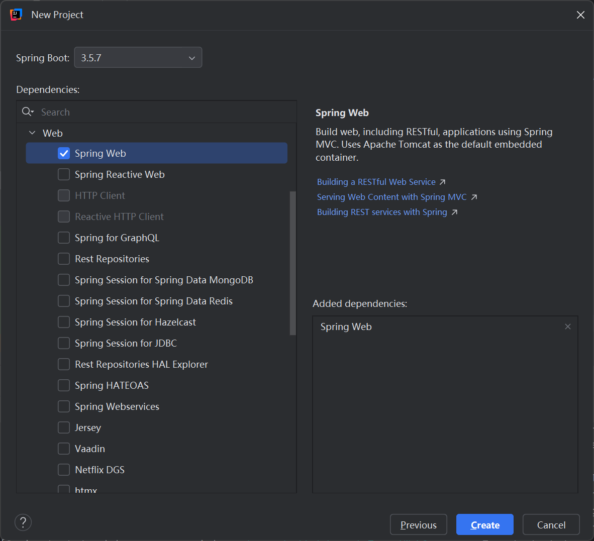 - spring-boot-starter-web:包含了web应⽤开发所需要的常⻅依赖