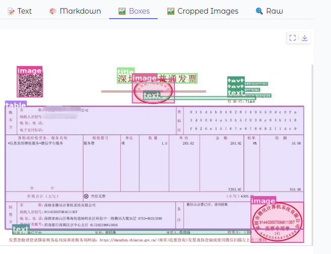 访问页面,上传一个发票图片,此时已经可以正常工作了:
