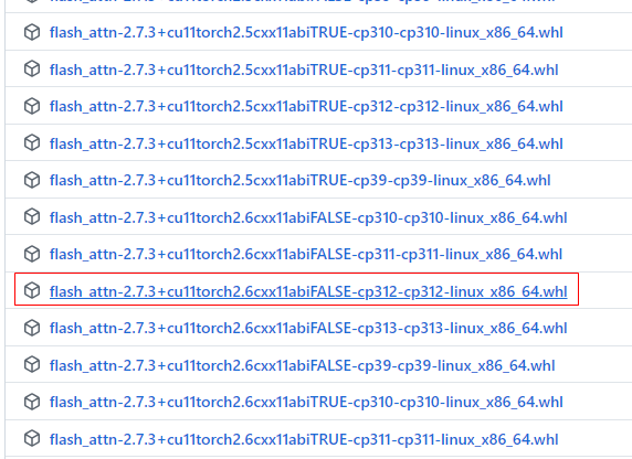 flash_attn-2.7.3+cu11torch2.6cxx11abiFALSE-cp312-cp312-linux_x86_64.whl这个版本