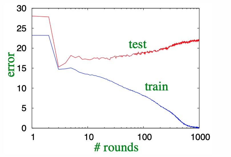 如果运行 AdaBoost 足够长的时间,它实际上可能会过拟合。