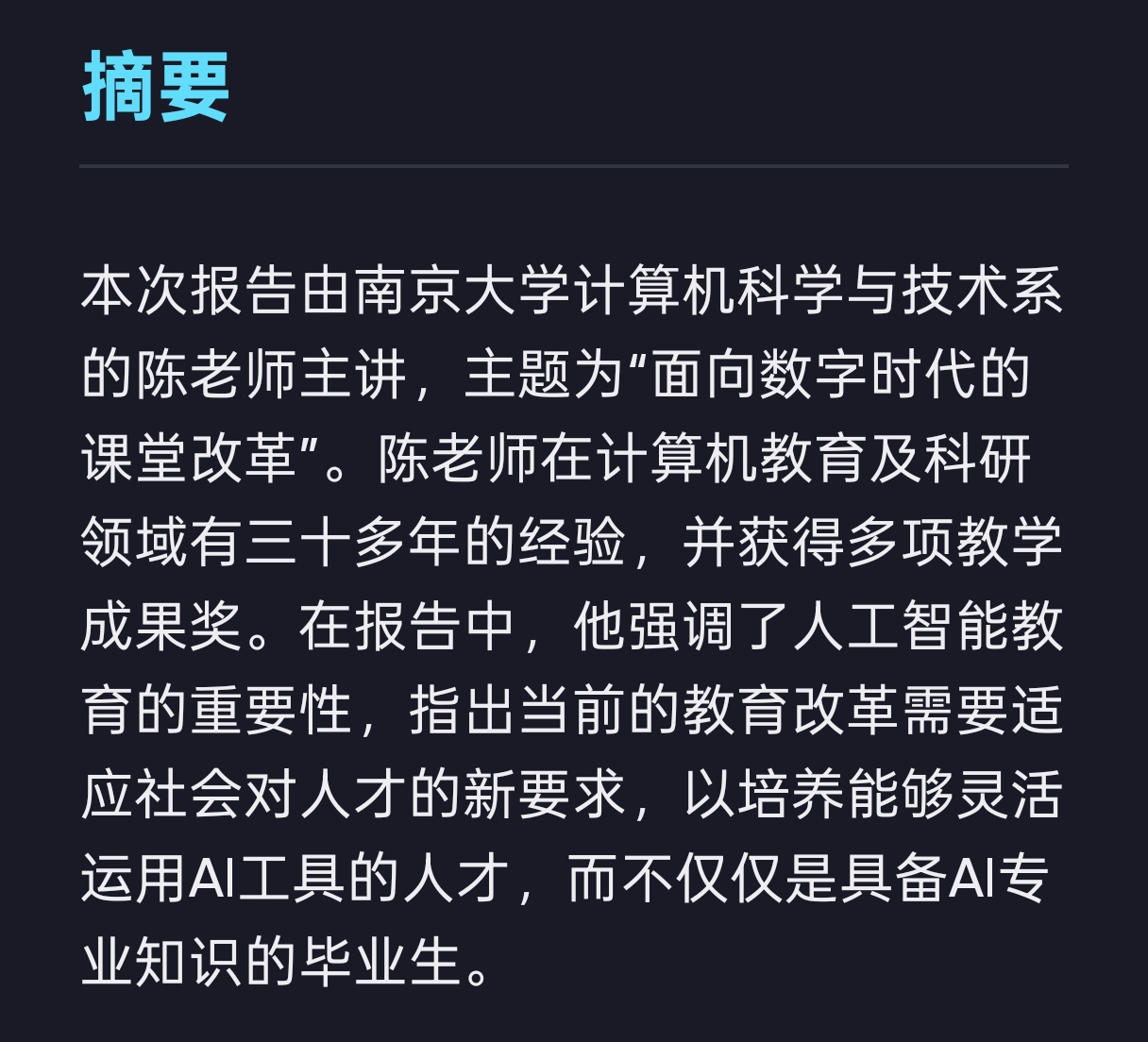 面向AI的课堂改革(南京大学 陈道蓄教授)
