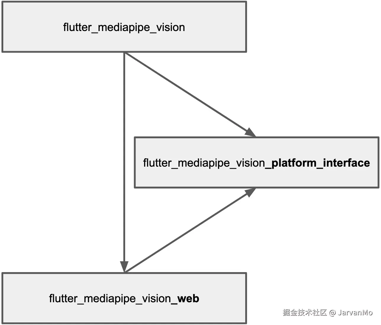 flutter_mediapipe_vision_web是针对 Web 的特定实现 ,也是本文的主要关注点。它依赖于第二个 package,因为它实现了相同的接口。它对第一个 package 一无所知。反过来,第一个 package 依赖于它,只是为了递归地将其带入项目中。