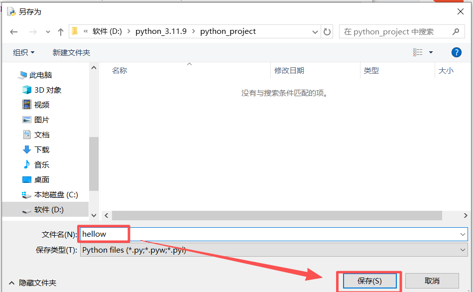 Ctrl+S保存------选择保存路径------文件名:hellow(可自定义)------保存