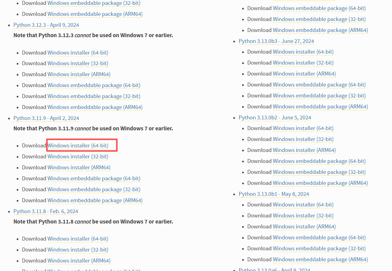 根据你的操作系统(Windows、Mac或Linux)选择适合的版本。对于Windows用户,如果你的系统是Windows 10及以上,可以直接下载最新版本的Python(如Python 3.10.x或更高版本)。如果你的系统是Windows 7或更早版本,可能需要下载旧一些的版本(如Python 3.8.2),因为最新版本的Python可能不支持这些旧系统。
