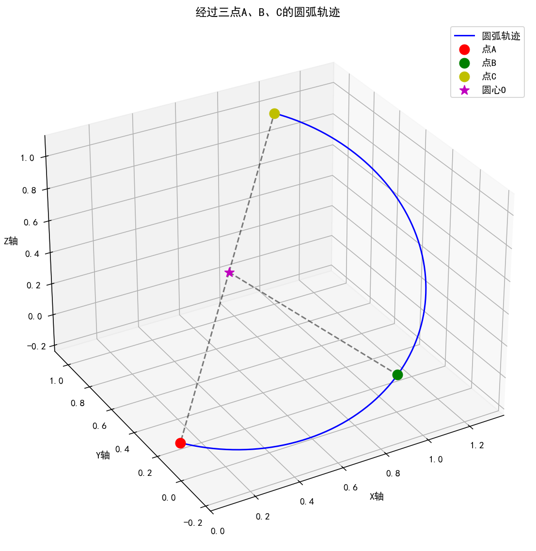 计算空间中经过三点A、B、C的圆弧轨迹
