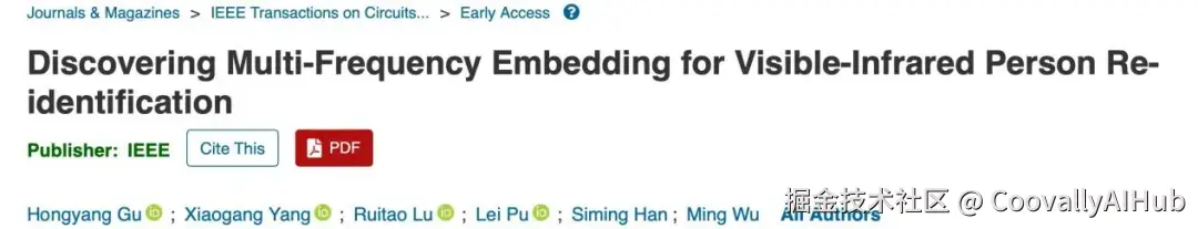 火箭军工程大学杨小冈教授团队的最新研究《Discovering Multi-Frequency Embedding for Visible-Infrared Person Re-identification》提出了一种全新的解决方案------多频嵌入网络(MFENet)。