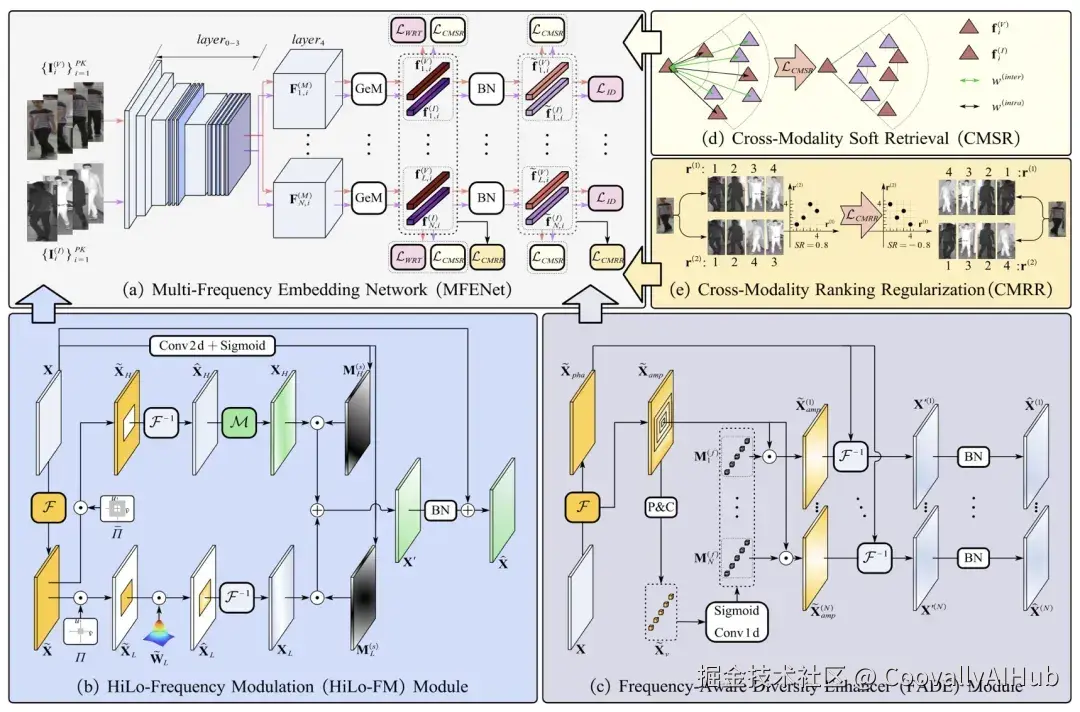 火箭军工程大学团队提出的MFENet,首次将高效的高低频特征处理(HiLo-FM)与精细的多频带注意力(FADE)相结合,并辅以专为跨模态检索设计的CMSR和CMRR损失函数。