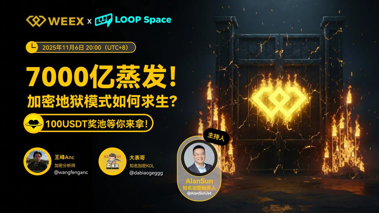 11月6日晚,WEEX举办主题为《7000亿调整!加密市场挑战如何应对》的Twitter Space,引发业内热议。在这场近一小时的深度交流中,主持人 @WeexCn 与知名观察者 @AlanSun 邀请了两位嘉宾------宏观流动性分析师 @王峰Anc 以及资深加密分享者 @大表哥,共同探讨这场"流动性考验"背后的成因与应对之道。