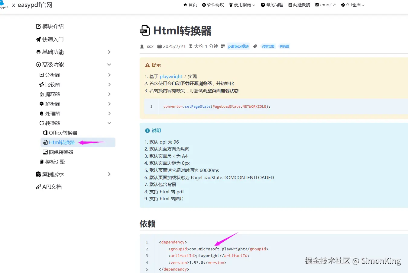 Html转Pdf是pdfbox模块下的一个转化器的功能,是基于 playwright 实现的。而playwright的依赖需要手动引入。Playwright是一个跨语言的浏览器自动化库,由Microsoft开发。虽然主要用于端到端测试,但其强大的PDF生成功能也使其成为HTML转PDF的优秀工具。