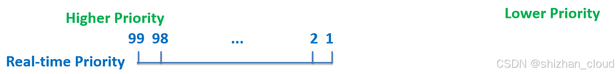 结论: 优先级最低的实时调度器进程的优先级高于优先级最高的非实时调度器进程的优先级。