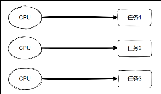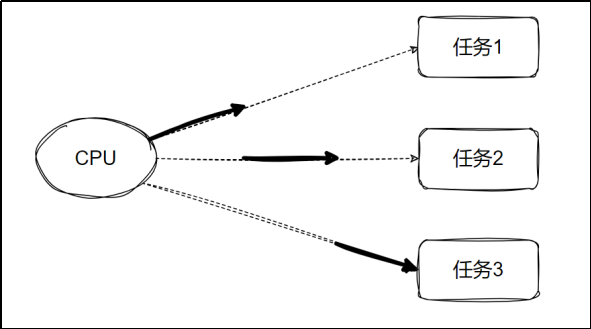 **并发:**单个 CPU 处理多个任务。各个任务交替执行一段时间。