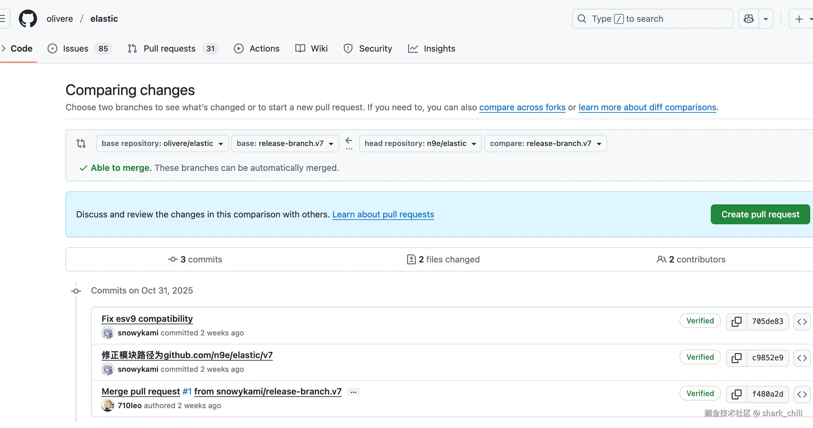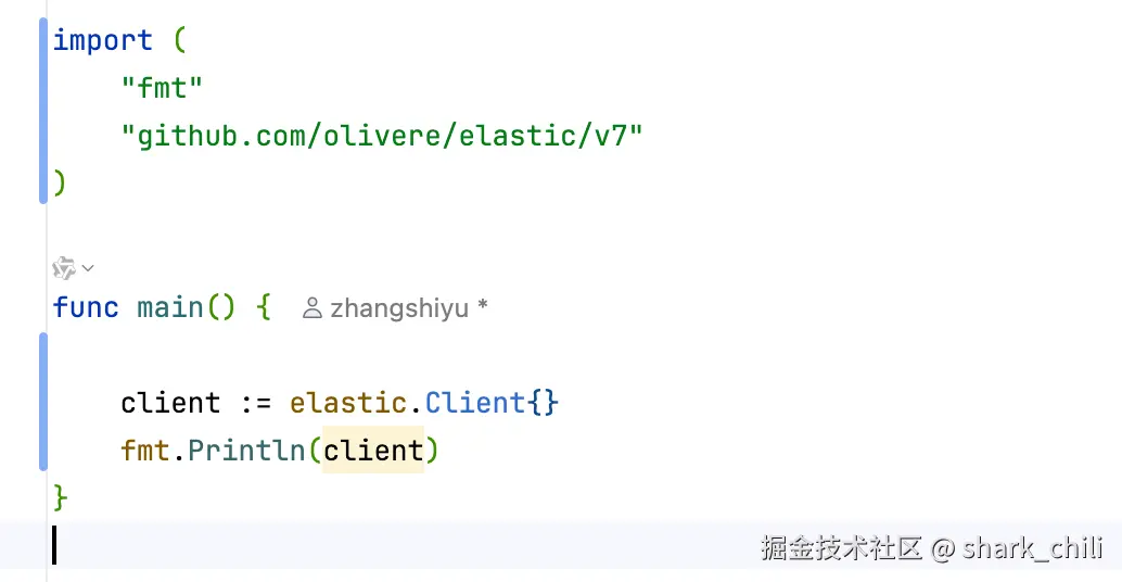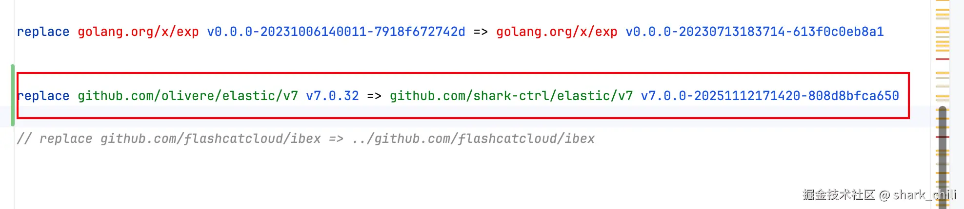 当然笔者这里为了省事直接通过go get module name@branch获取最新版本,以笔者为例对应的指令为go get github.com/shark-ctrl/elastic/v7@release-branch.v7: