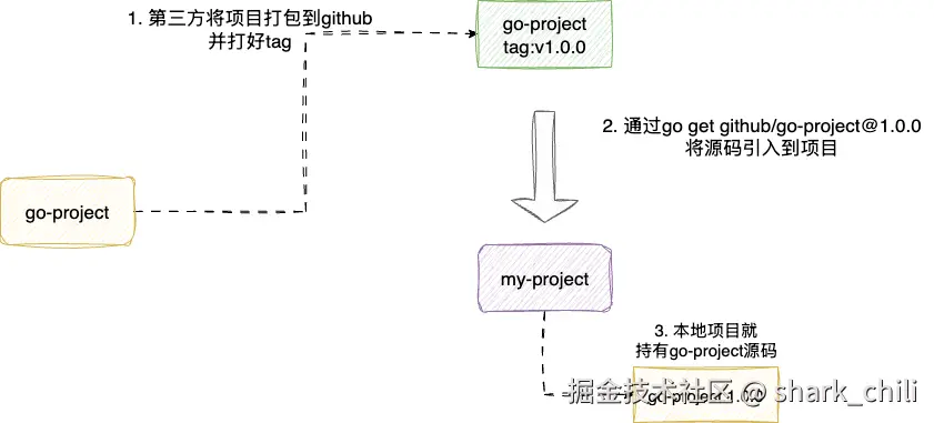 对于java开发而言,每一个项目完成之后都会打成一个jar包即中间层代码,所以可借由依赖包管理工具maven完成导入,而go语言没有中间字节码这样的一个过程,所以引入第三方依赖的方式都是通过源码,随着人们对于方案的不断探索,对于go语言的方式管理也别有了如下两种主流方案: