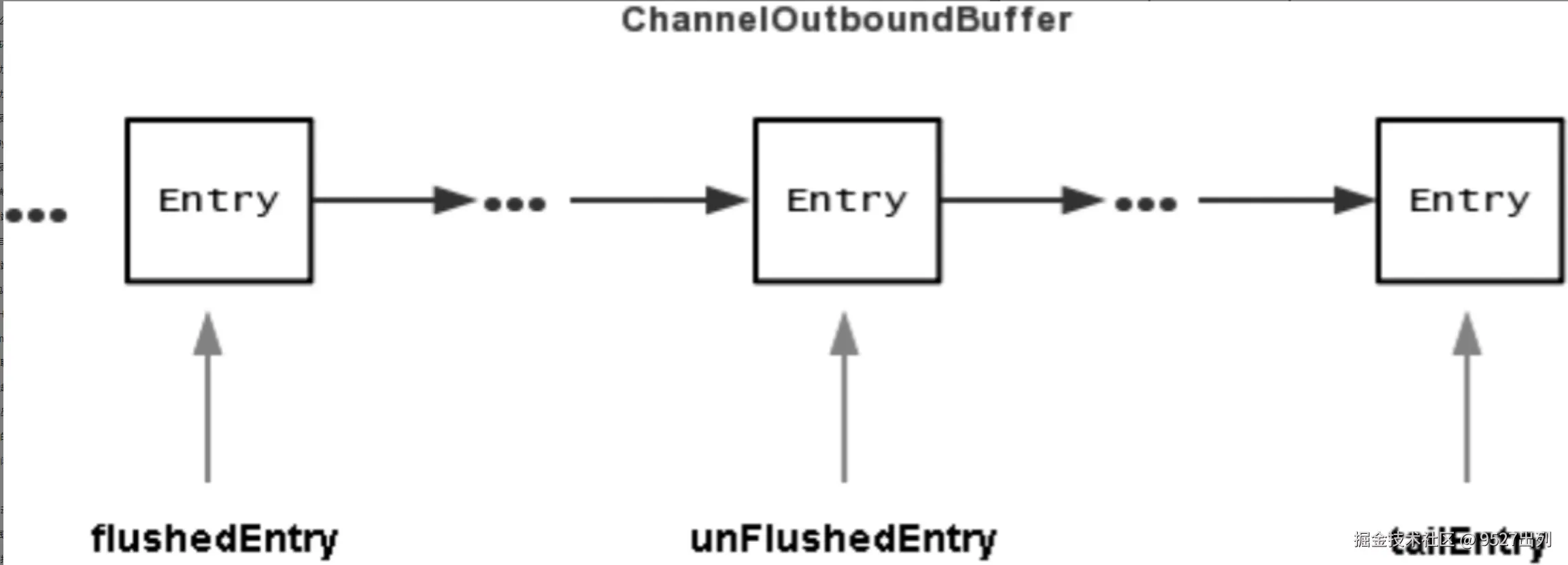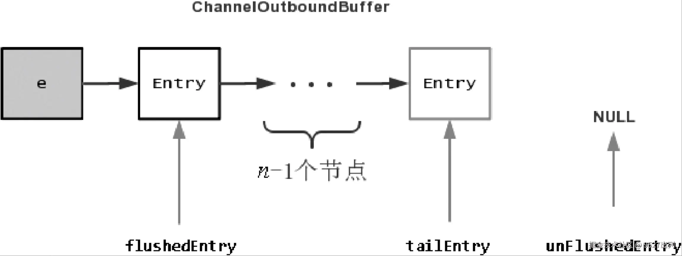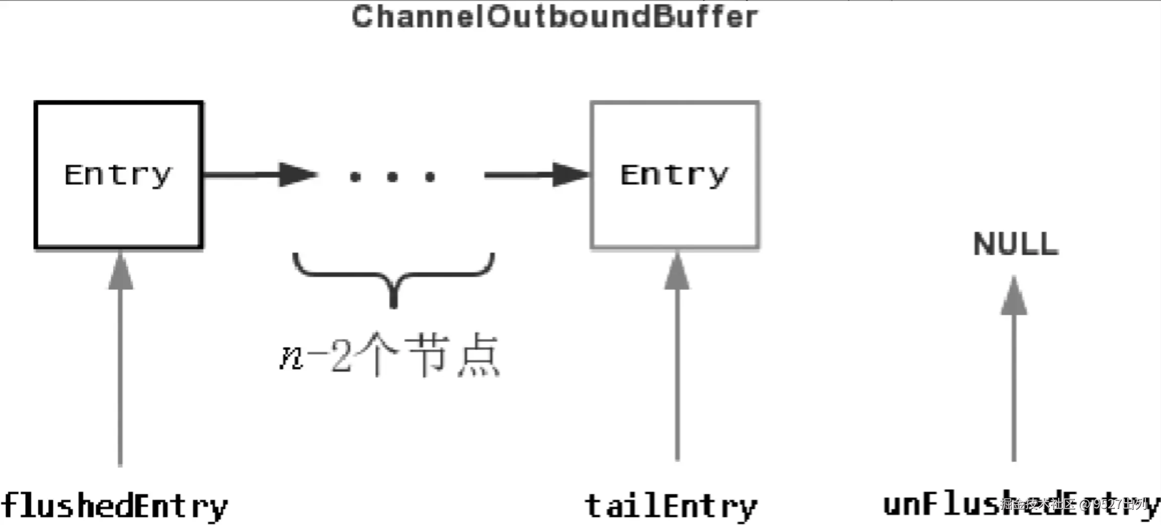 ChannelOutboundBuffer 内部维护了一个单向链表结构,用来保存待写的 ByteBuf 节点。