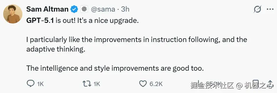 深夜,GPT-5 系列迎来大更新:上线 GPT-5.1 Instant 以及 GPT-5.1 Thinking 模型:
