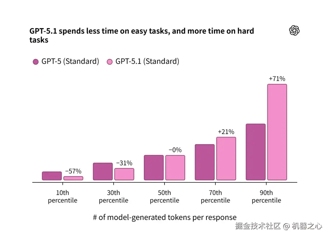 与此同时,OpenAI 也在升级 GPT-5 Thinking 模式,使其在日常使用中更加高效且易于理解。现在,它能更精准地根据问题调整思考时间 ------ 在处理复杂问题时投入更多时间,而在处理简单问题时则更快响应。实际应用中,这意味着对于难题,它能给出更详尽的答案;而对于简单问题,它则能更快地给出响应。