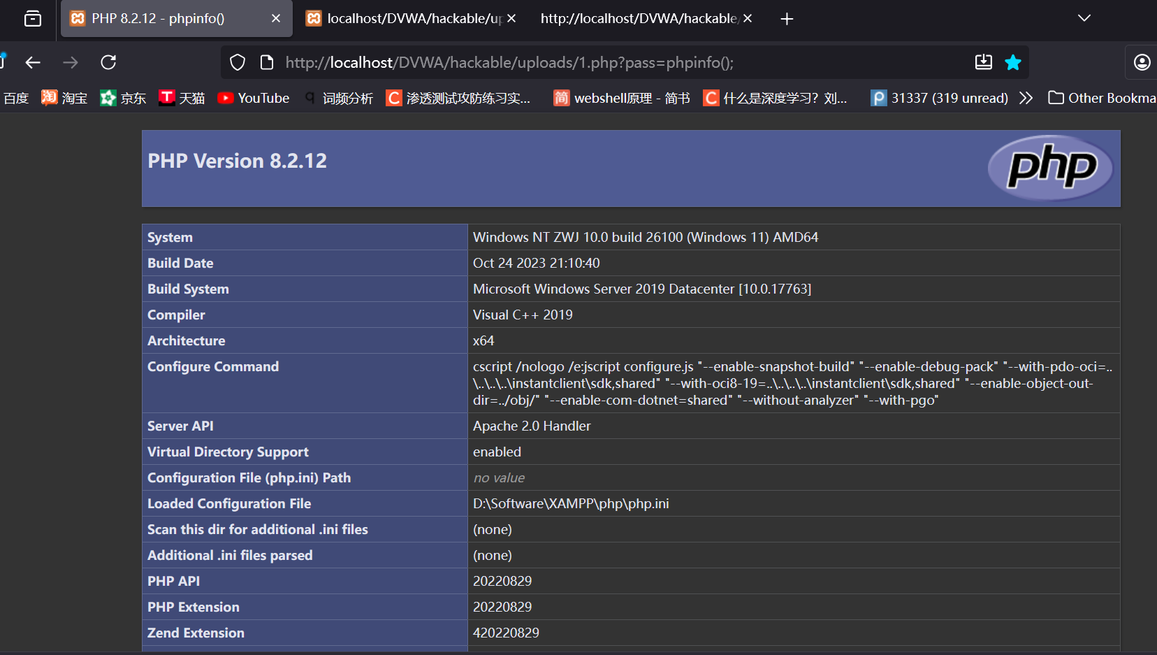 3、第一步最好是使用phpinfo();查看一下是否真的可以执行php代码,顺便可以看到平台信息。