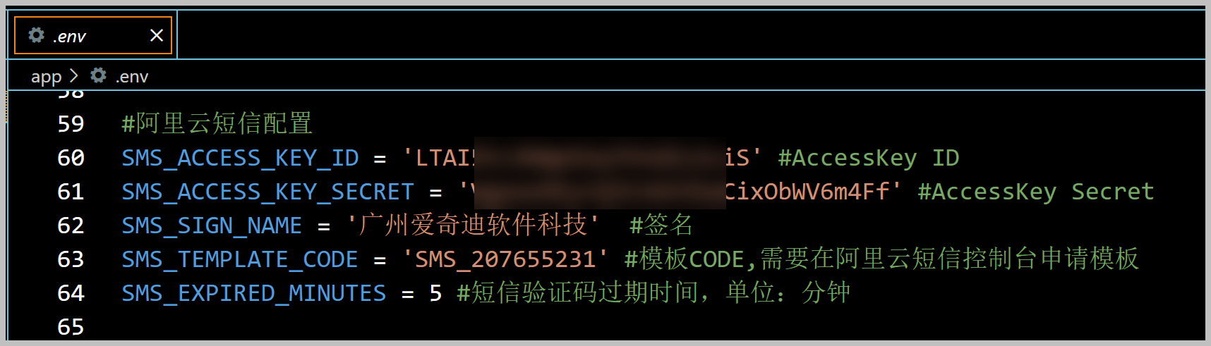 我们使用阿里云API发送短信,一般需要提供下面的身份信息。