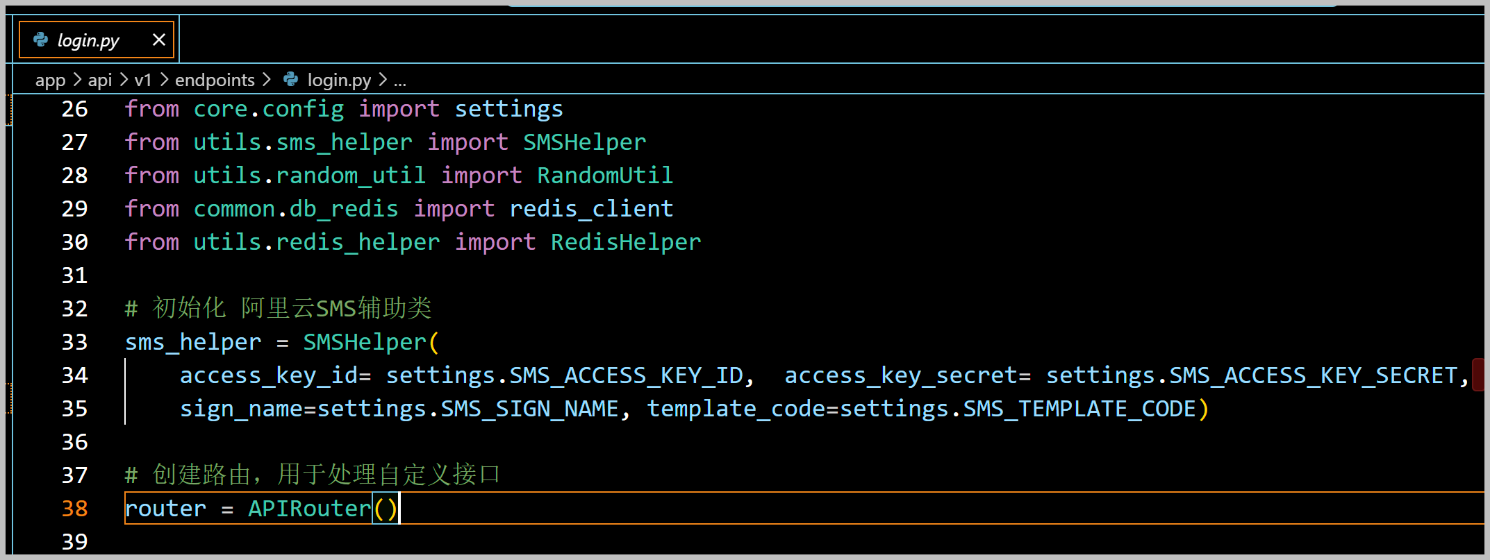 如我们在登录login的EndPoint(类似C#的控制器类)中需要先初始化短信的服务辅助类。