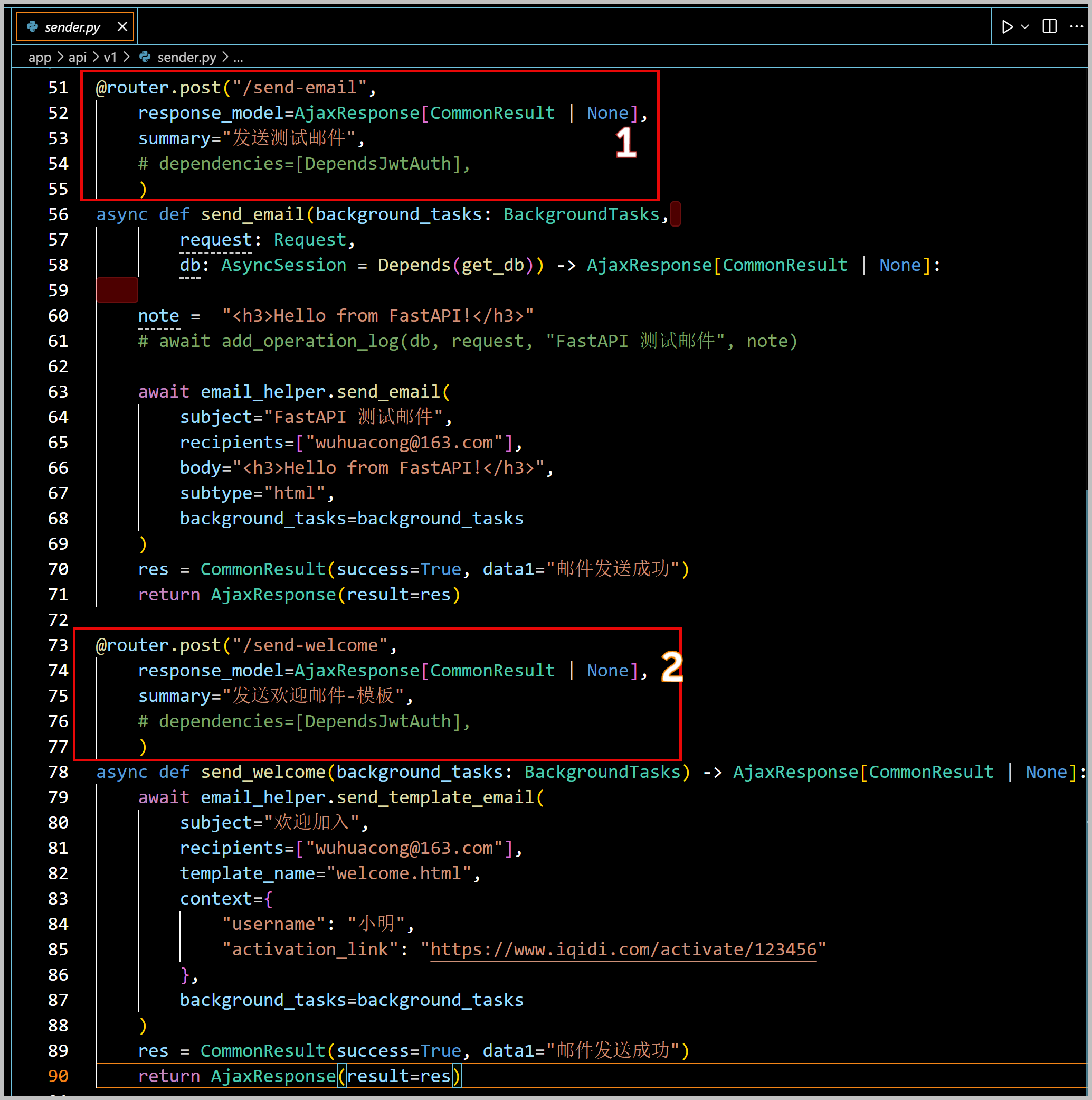 3、在基于FastAPI的Python开发框架中整合邮件发送