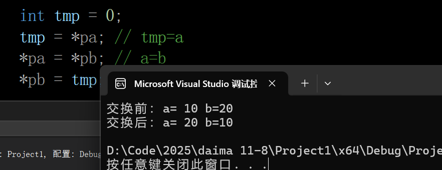 Swap2(&a, &b); //传址调用,将a和b的地址传过去