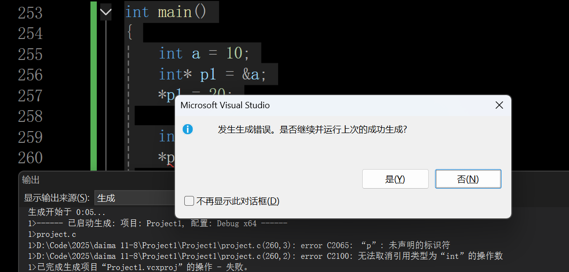 上面的a被const修饰后,此时这个代码会报错,但如果放在C++坏境(即.cpp文件)下,它会将a当成常量,因此不会报错,在C语言会报错