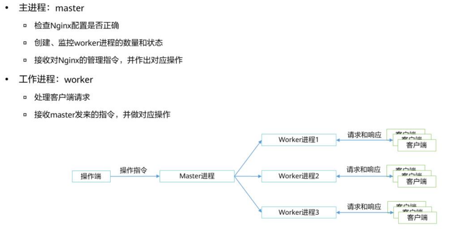 - 注意:默认情况下,nginx会建立和服务器CPU核心数相等的worker进程,woker进程之间相互独立,若一个进程故障不会影响其它进程