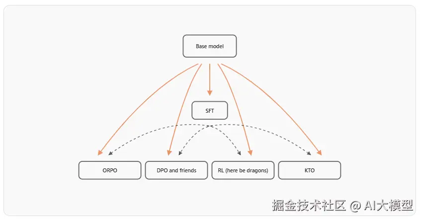 - 偏好优化(PO):用于直接从人类或 AI 偏好中学习;
