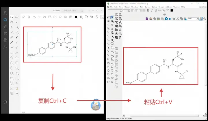 **方式一:**直接复制粘贴(Ctrl+C/Ctrl+V):这是在两款软件之间转移结构式最常用的方法。