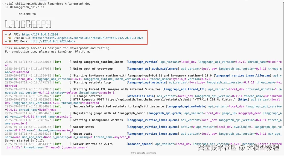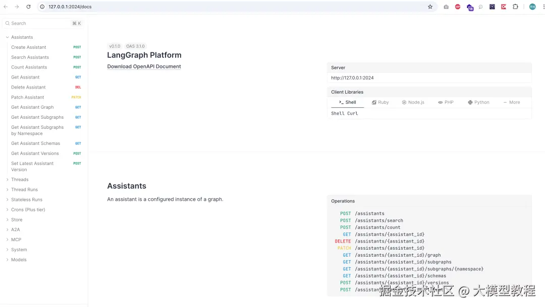 第三个可以打开,打开后是LangGraph的API文档说明,并且可以在线测试API,这里就不给大家演示了,很简单。