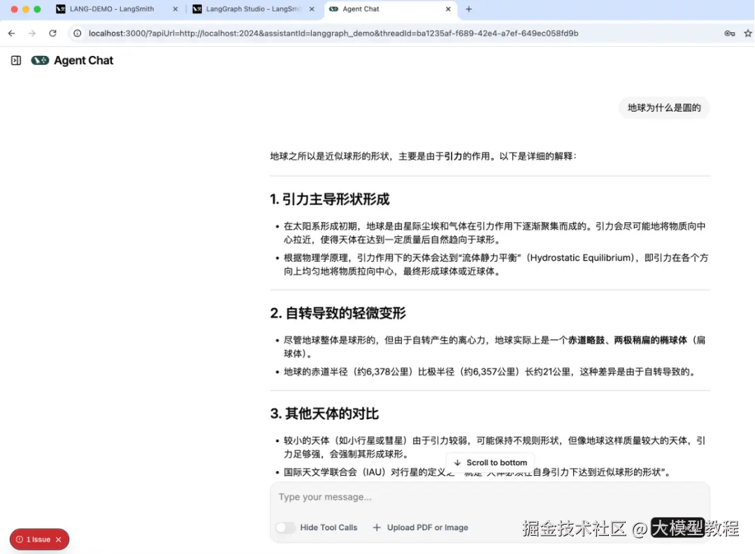 最近乱七八糟的事太多,今天来点偏技术实战的,带大家用LangChain & LangGraph快速入门用编程创建智能体,用LangSmith进行追踪,Agent-Chat构建Agent UI。