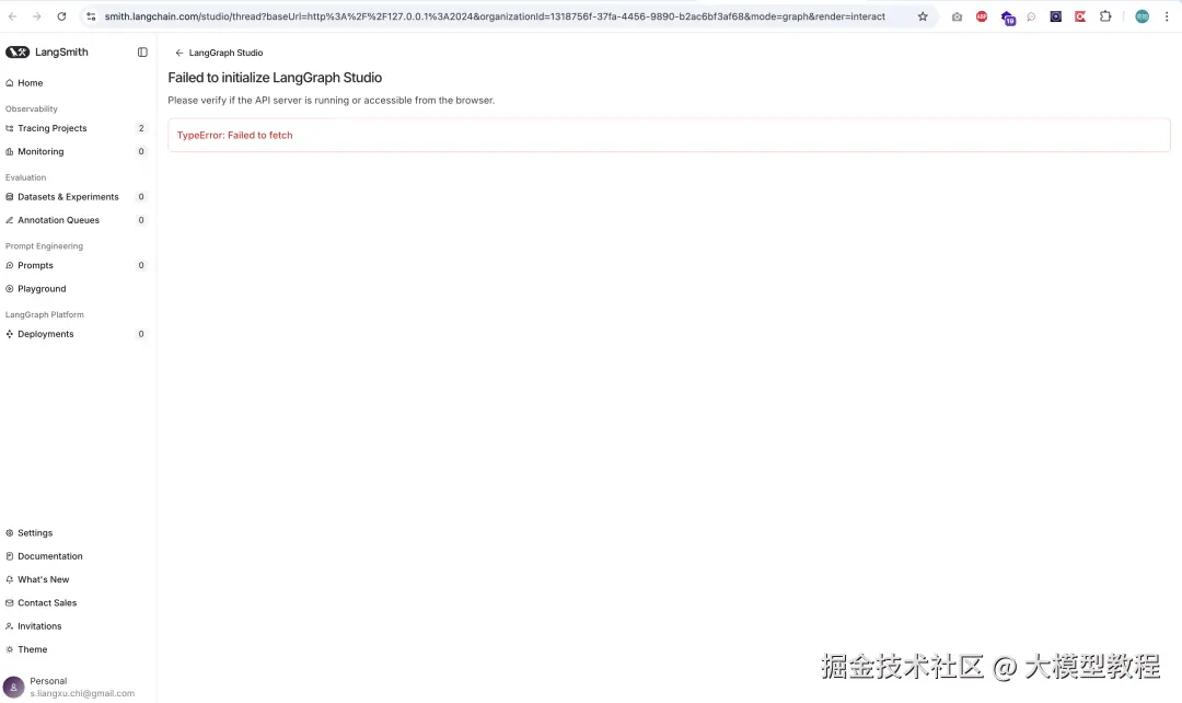 这意味着什么呢?这意味着只要你用【langgraph dev】启动了你本地的工程,你在何处访问你的项目,都会自动进行行为追踪并且在LangSmith平台上进行查看。