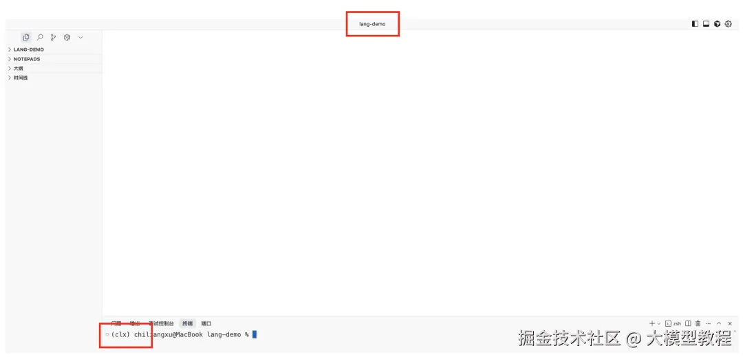 第一步,我们在外头创建一个空项目文件夹,这里我选择叫【lang-demo】,然后用Cursor打开该文件夹。