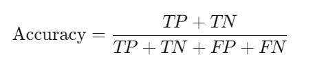 - TN:模型正确预测为负例的数量(猜对了负例)