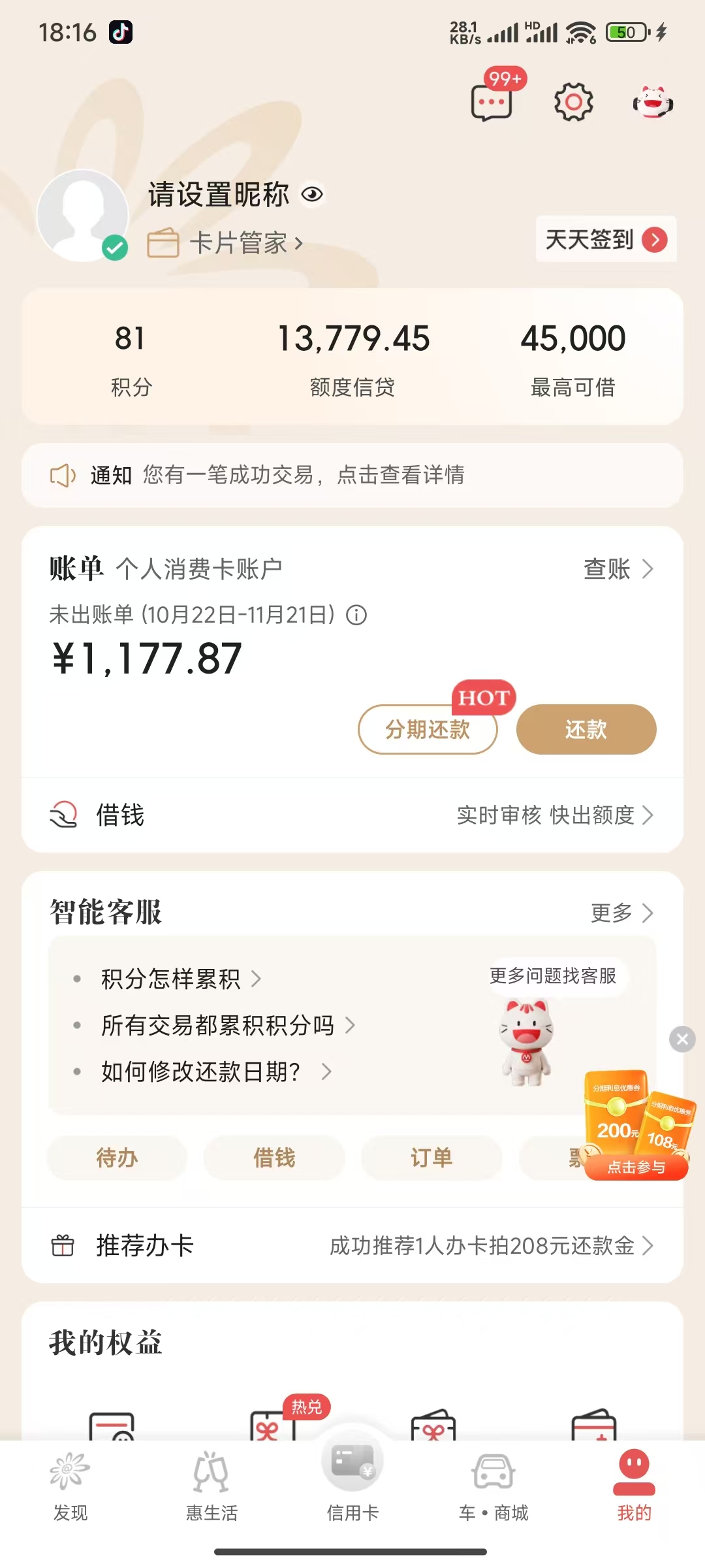 前情提要:本卡是今年某月某日办理的,(每家银行,或者同一家银行不同卡种账单日设定规则是不一样)这里主要是为了方便学习按照我的卡来处理了。