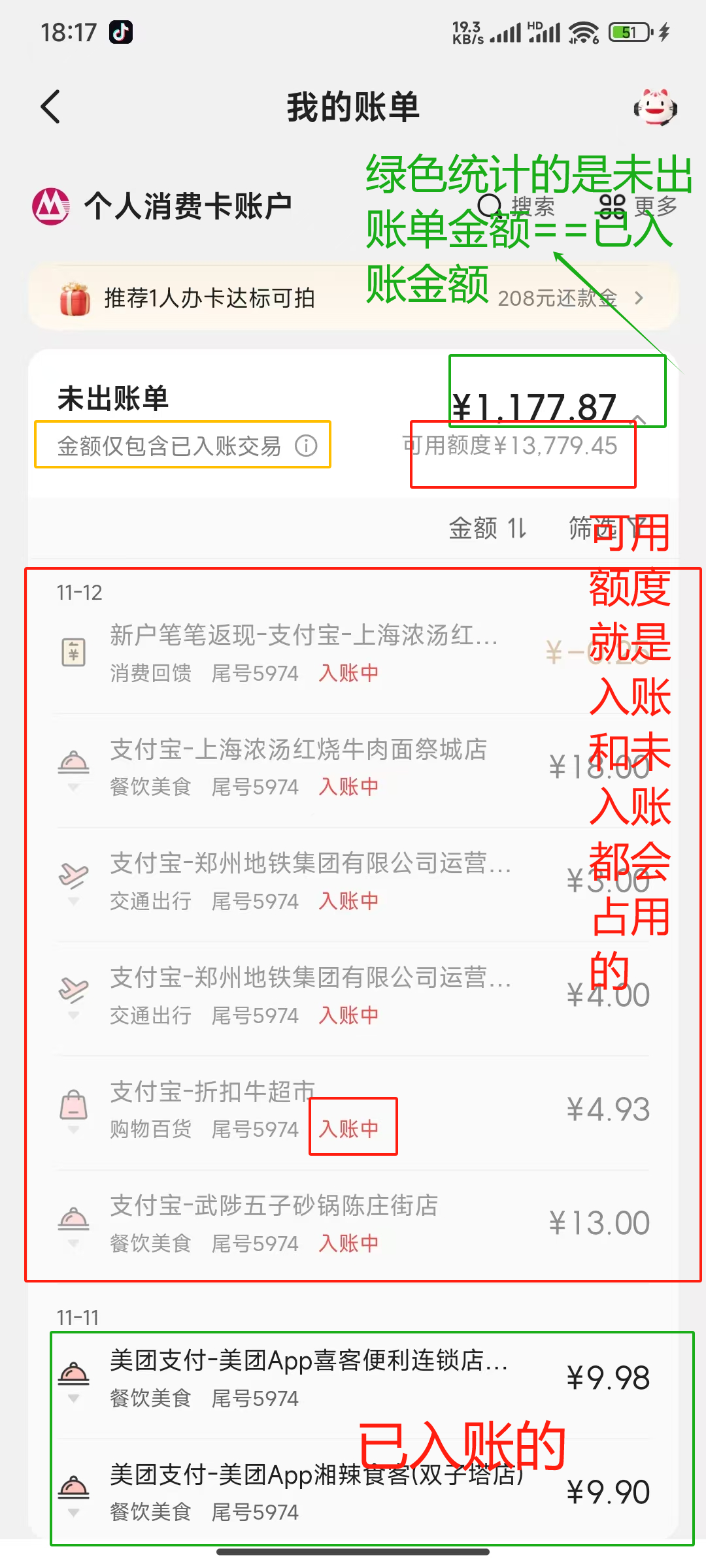 实际消费的钱要不管入账和不入账都占用额度)这里要大家多看看多细品 图(4)