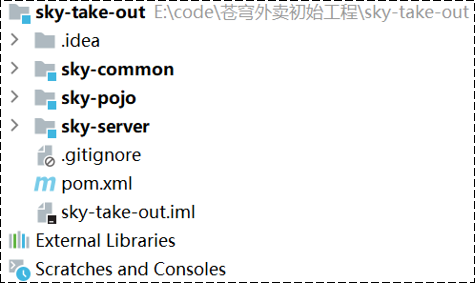 | 1 | sky-take-out | maven父工程,统一管理依赖版本,聚合其他子模块 |