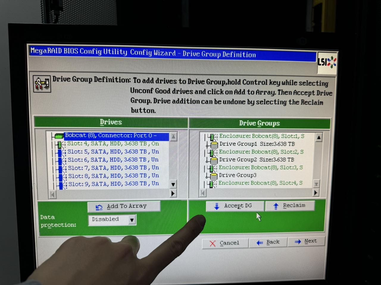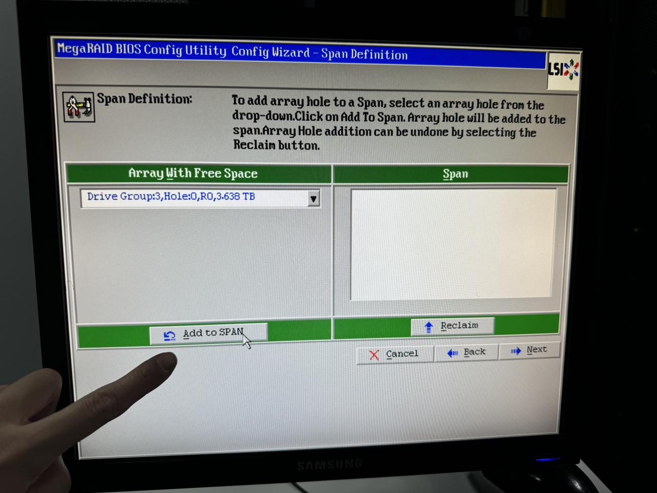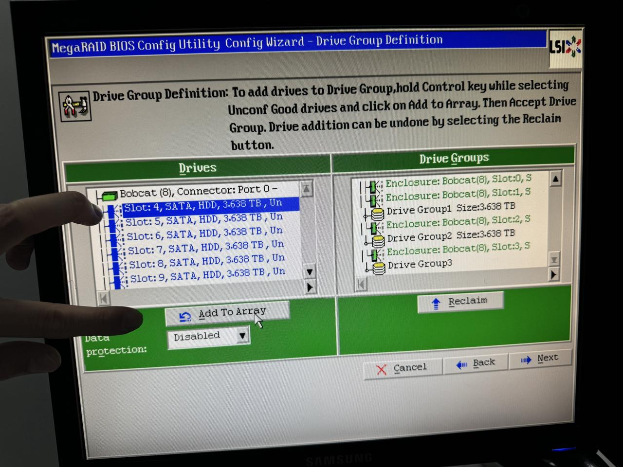 先点击选中一个硬盘,->然后Add To Array(添加阵列)至右侧