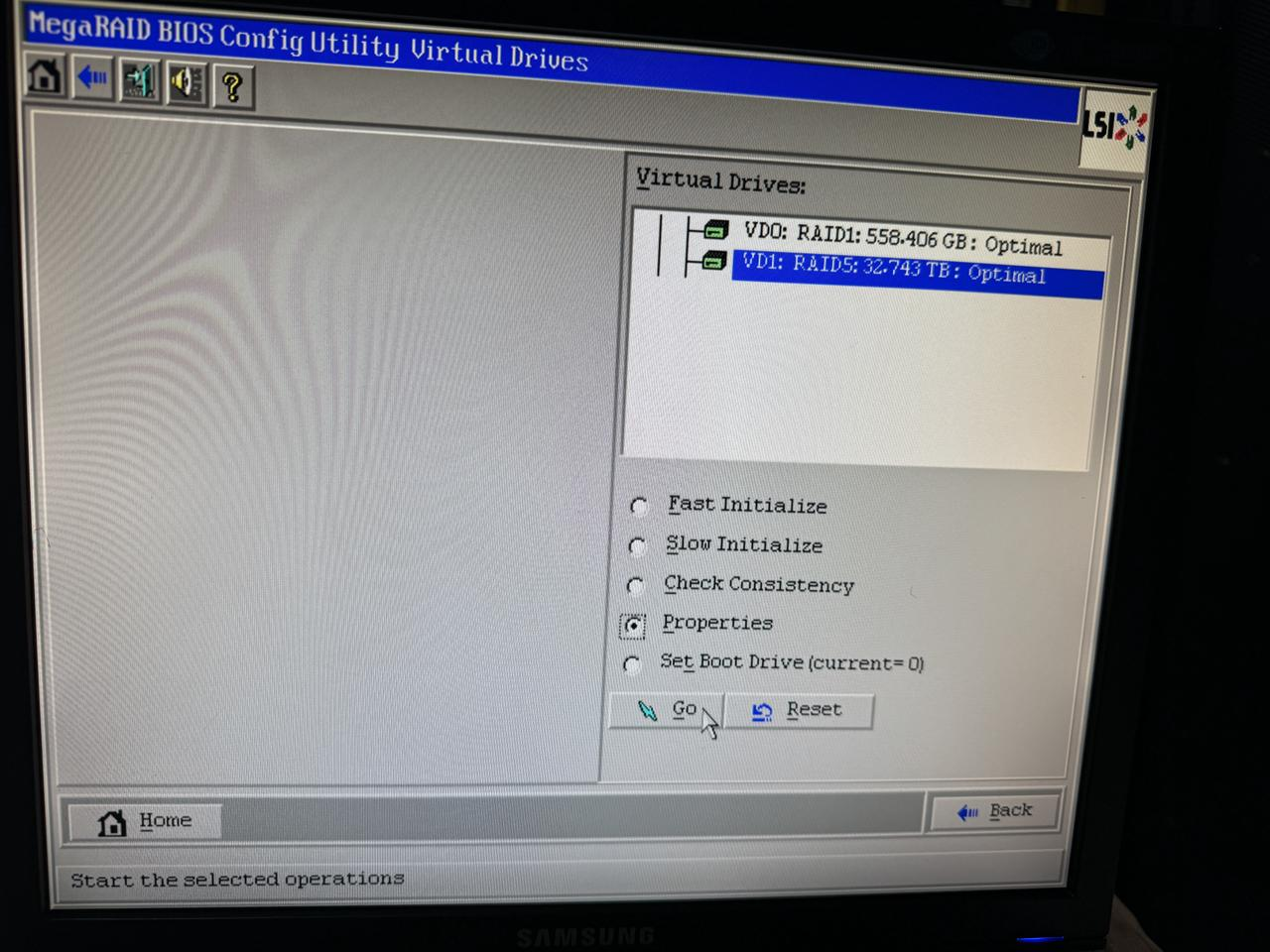 点击 Virtual Drives ,点击要操作的raid, 选择ProPerties(属性)->点击GO