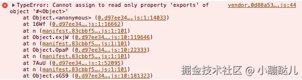 npm run dev运行一切正常,可执行npm run build打包后,生产环境控制台直接抛出TypeError: Cannot assign to read only property 'exports' of object '#<Object>'错误?